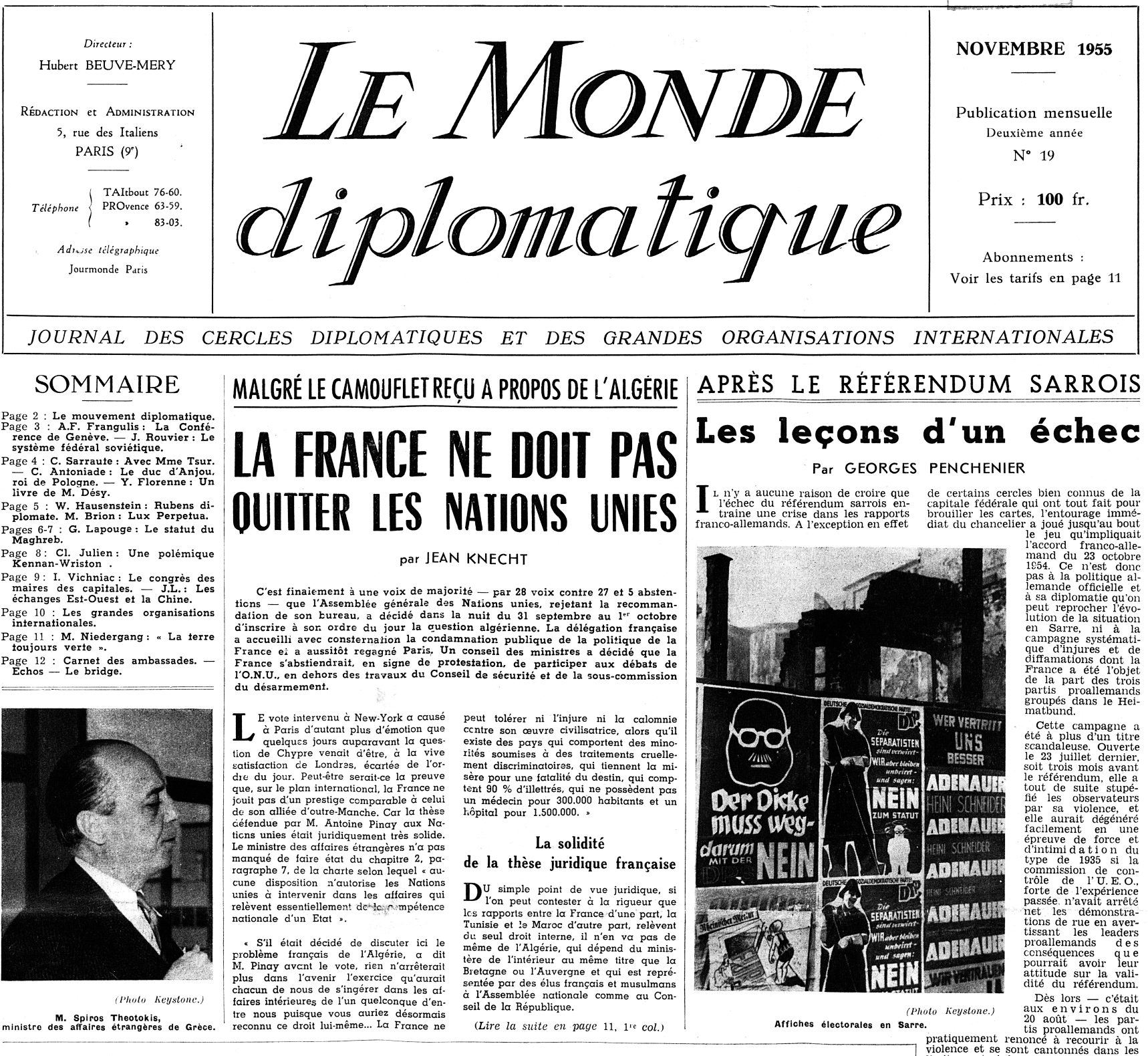 « La France ne doit pas quitter les Nations unies », novembre 1955