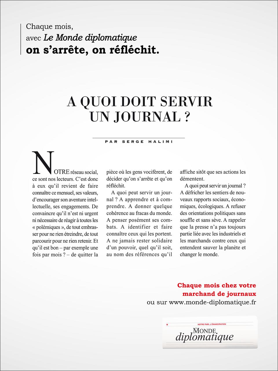 « On reproche parfois au journal sa tonalité critique. Mais depuis vingt ans le “Diplo” a souvent été force de proposition : la taxe sur les transactions financières, le salaire maximum, le revenu universel, le projet pour une presse libre.